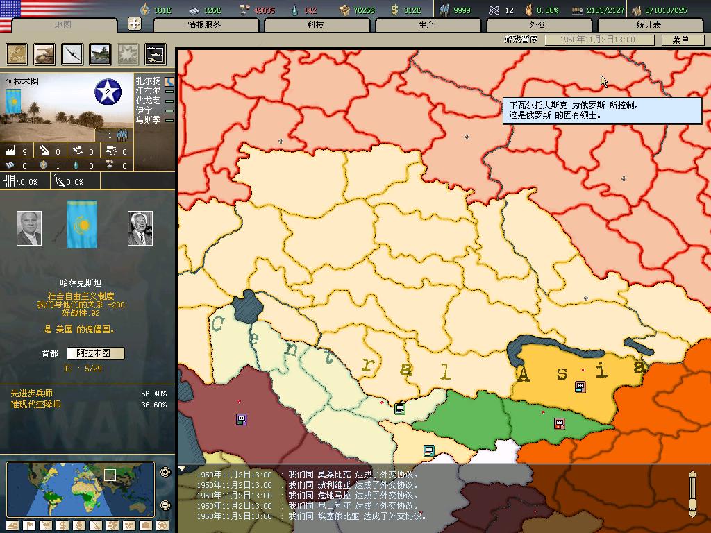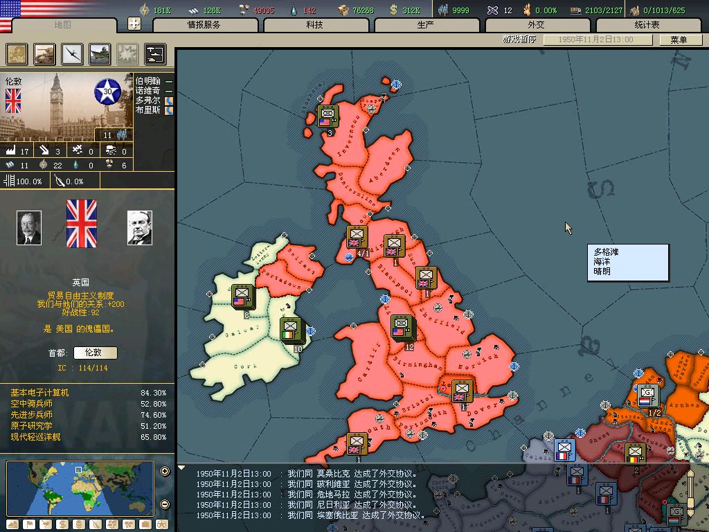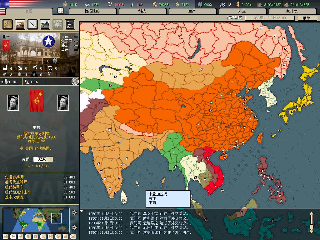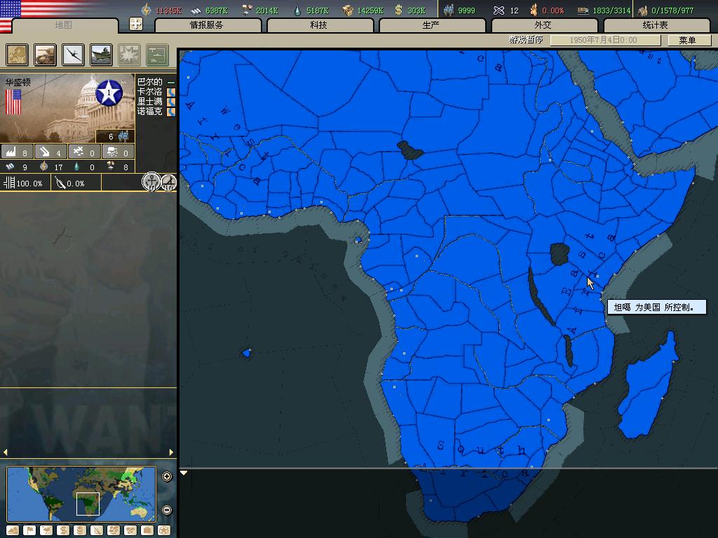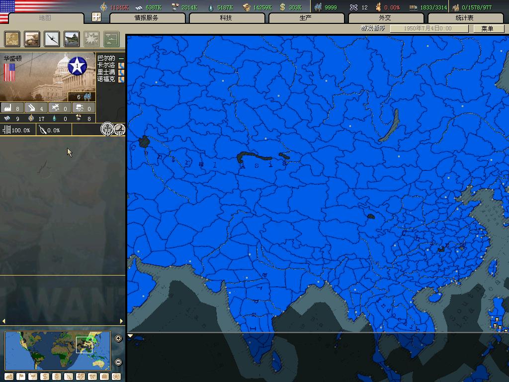 编纂这本地图册的前提是统一世界,我们首先必须达到这个条件。而且由于游戏到1955后无法放出傀儡,所以还要赶在55年大限之前统一世界,但幸好,我做到了,下面几楼是我统一世界的证据。这一部分是不属于本地图集的。