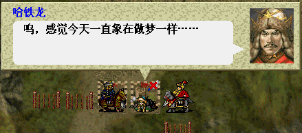 第二回合,敌人反击,金无处 必然是 吹风,而哈铁龙随机攻击(有混乱,毒烟,肉搏),(SL大法几次后,即出现肉搏)高宠反击,哈铁龙死。(我是反暴击,因为练果,武器等级不高)