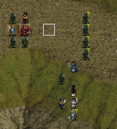 第三回合宗源灭道士及斜上角拿无名剑的勇士 周灵混乱追下来的勇士,美容输送宗源 敌军回合 贼兵砍到宗宝喘气,需要S/L :周灵不被混乱