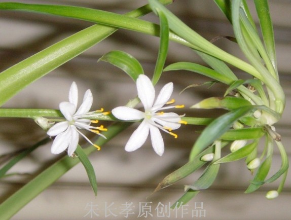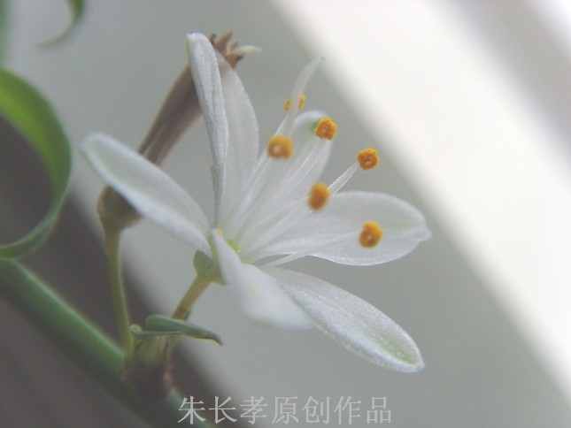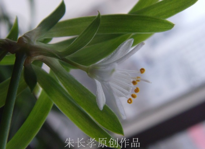 俺这人有种花的爱好,但是往往种瓜不得瓜,种豆不得豆,所以历经不知多少次花草的死亡,才发现无所畏惧的吊兰,我种的这种吊兰连我自己都不知道它是什么品种,但是它清新淡雅,顽强的生命力却深深感染了俺,所以俺就在家中了很多这种吊兰。从三月下旬开始我窗台的几盆吊兰争相开花,要知道它们冬天是无法存活的,只是靠着暖气才顽强生存下来(详见图1),真让人怜惜。花朵淡雅,每个小花朵只有手指甲那么大(详见图2),每朵花也就两天的时间就开败,趁着清明时节到来,俺用数码相机把它们保留下来,与大家一起享受这个生机勃勃的清明时节。