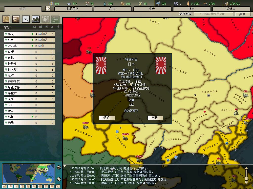 前段时间看了央10台《百家讲坛》俞大华教授的末代皇帝溥仪的讲座,不禁对满洲国的历史产生了兴趣。于是就想开一局小胡子2的满洲国来玩。3代机子跑不起,AOD和其他MOD也不熟悉。本人是新手,在历史知识和战略战术上欢迎各位老师批评指教,涉及意识形态和民族矛盾的话题就暂免在本帖讨论了。
