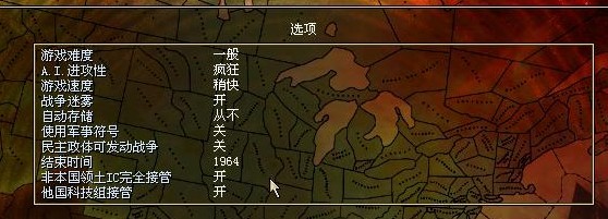 言归正传,傀儡国没法玩,所以开局先进日本放弃了对满洲国的傀儡权,然后进满洲国开玩,设置如下: