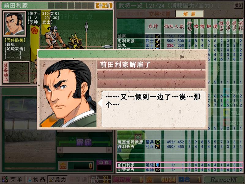 前田自然光荣退休,其实光秀也可以陪他,但是看在光秀464的内政上面,还是姑且一用先。丹羽长秀的落武者狩猎是他位置的保证,话说其实多升一些落武者狩猎,有助于提高兰斯的个战等级