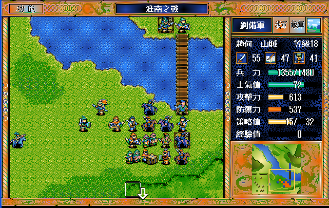 敌:骑兵1右侧攻击(反击)武术家右上(反击)贼兵下方(反击)赵何,军乐队右侧攻击简雍