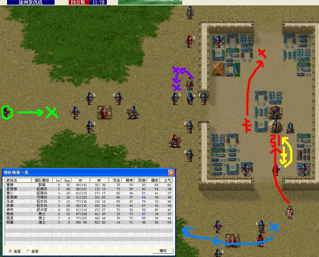 瞎猴入城后须保证被射中,根据40%原则能引步兵入城。小乐乐一屁股将米猪坐死在城墙角,小李子顶替疯笑。大胖去找狗货那边的小兵练棍子(拳?)。之后风平浪静,考虑到经验和伤害,cc先升到9在灭陶三让。