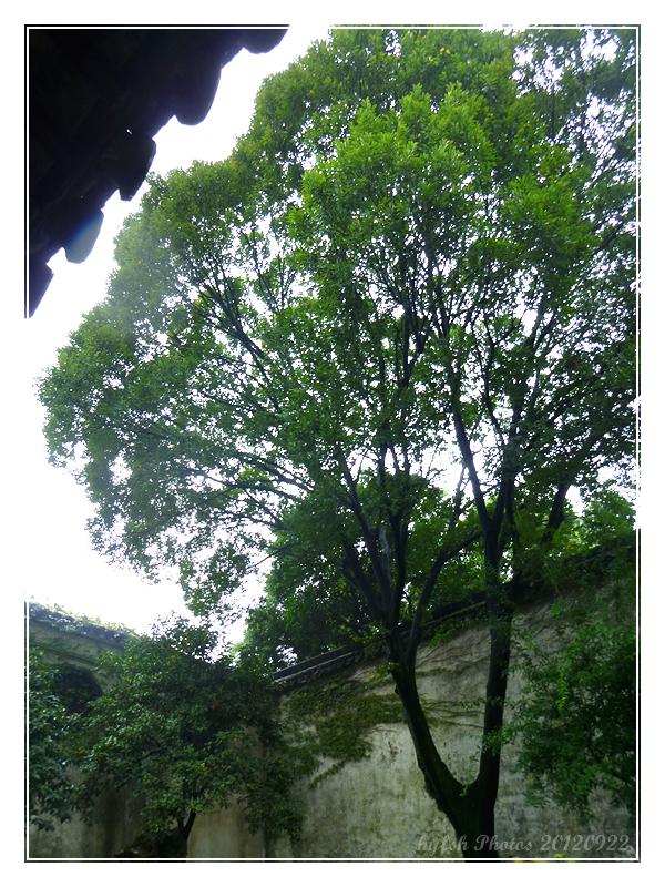 古木交柯,入留园首景,极小庭院,仅二树、一台、一匾。有柏树、山茶各一,交错缠绕,相携相依,心有戚戚焉……