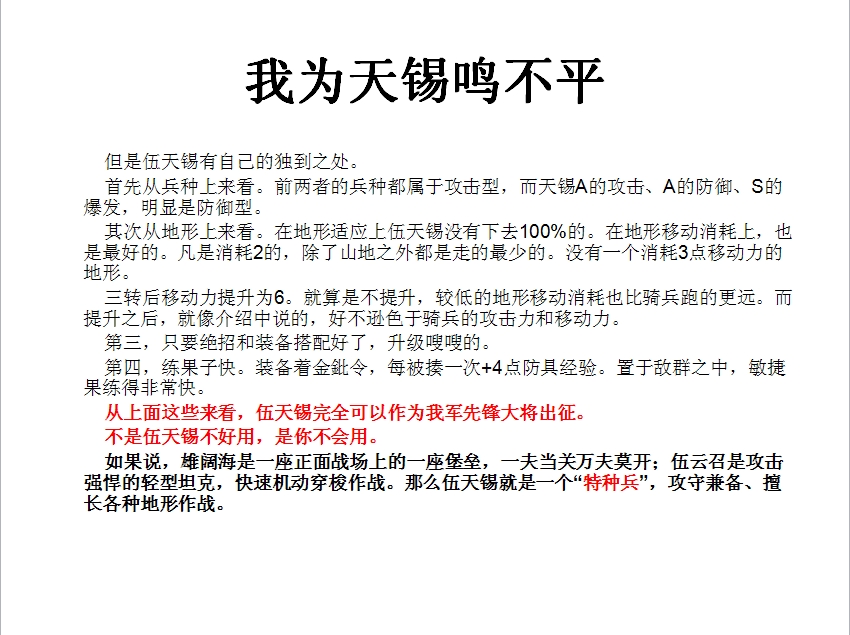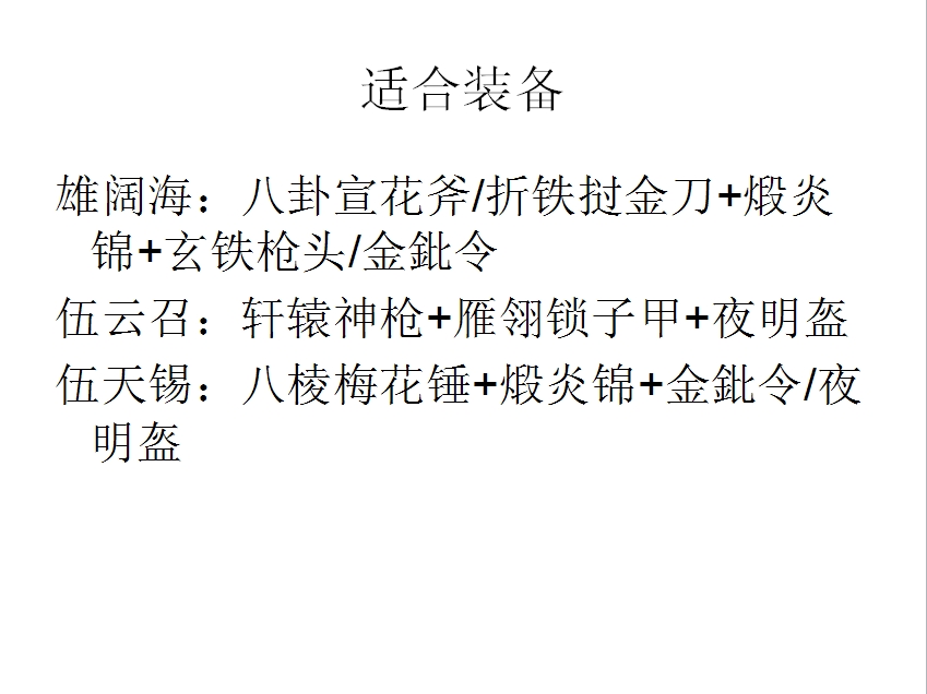 标题: 三伍分析(条件:拖级成功), 三伍最适装备搭配+我为天锡鸣不平