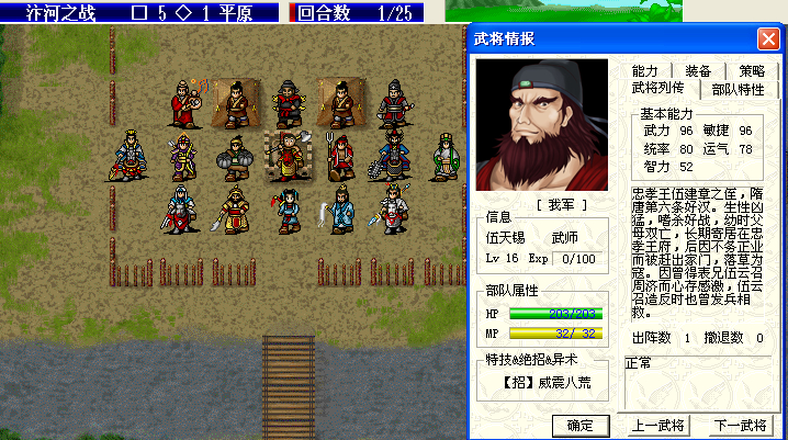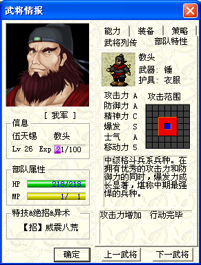 这样我的26级伍天锡面对4级的敌军,就好比砍菜切瓜了。反击都是一击必杀,想被保卫是很难啊!