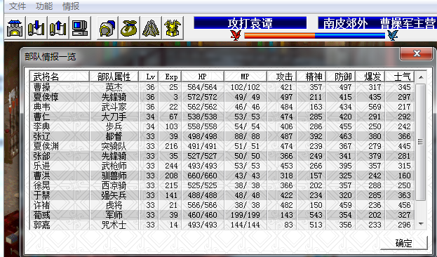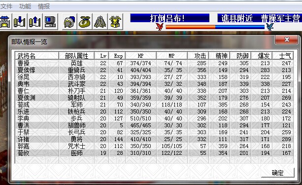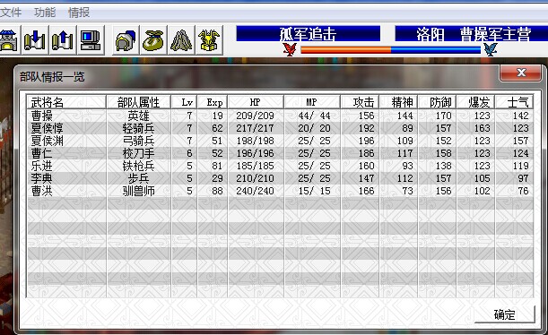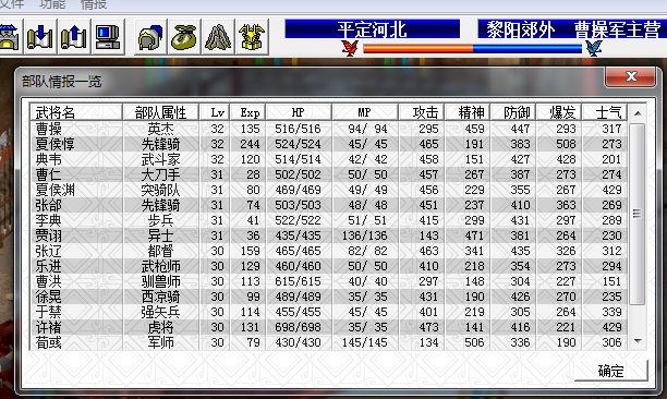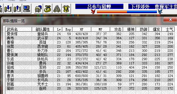 清的差不多的时候害死华雄再去慢慢清李肃那帮人时间完全来得及(这里曹仁 乐进都可以进树林打,为了经验多一点,输出少一点,我在平原打的)
