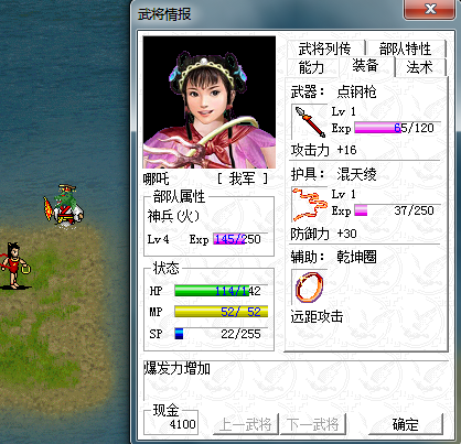 第四回合哪吒进兵营天罡战气,之后慢慢打,运气好的话友军弓兵不会死掉,第九回合杀光敌军触发剧情,第十回合开始如图8