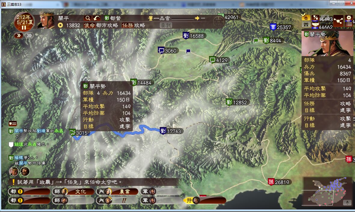 标题: 蜀汉第一神将关平--207三顾上级, 开个三国13战报