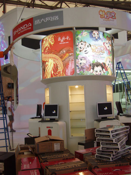 会展为期三天,从7月21-23日,在上海新国际博览中心召开,国内大多数游戏公司参加了这次会展。这是外场照片。