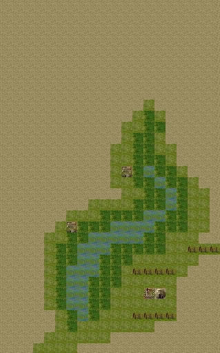 我不是很挑惕,下面是图例,南面是绿州,中心是湖泊,外面一层是树林,再外面一层是草地,其余的都是沙漠