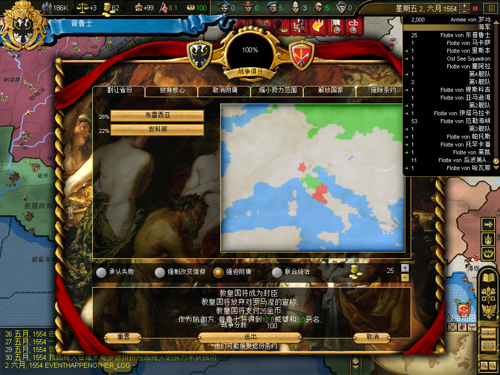 ^_^,好主意,你这个可以附庸教皇国,而且和他的关系也稳定了,可以帮助你获得更多的中枢....减bb,多好...我也那么做了,可惜我不得不改信奉新教,没办法,成立普鲁士的前提...哎,在考虑什么时候改回来
