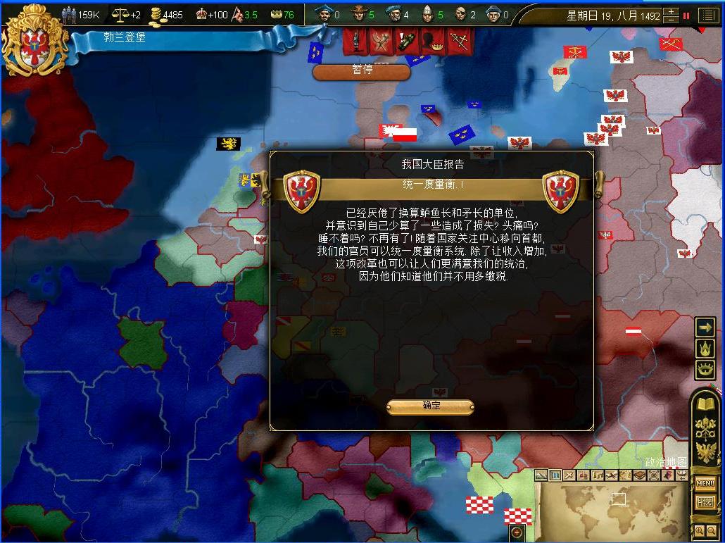 波兰也终于纳入了帝国的文化中,从此后波兰地区会成为文化融合地去了.....经济和稳定都会提升的....