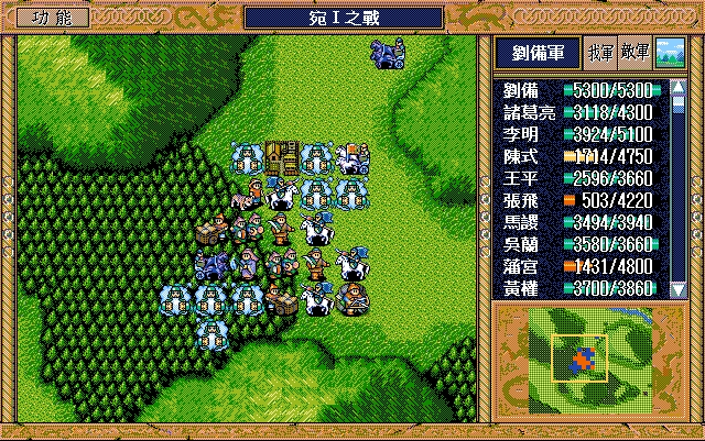 刘备(的卢、英雄之剑、2米),诸葛亮;刘辟(赤兔马、援军报告),李明,马谡,沙摩可(焦热书),黄权,陈式(蛇矛),王平,吴兰