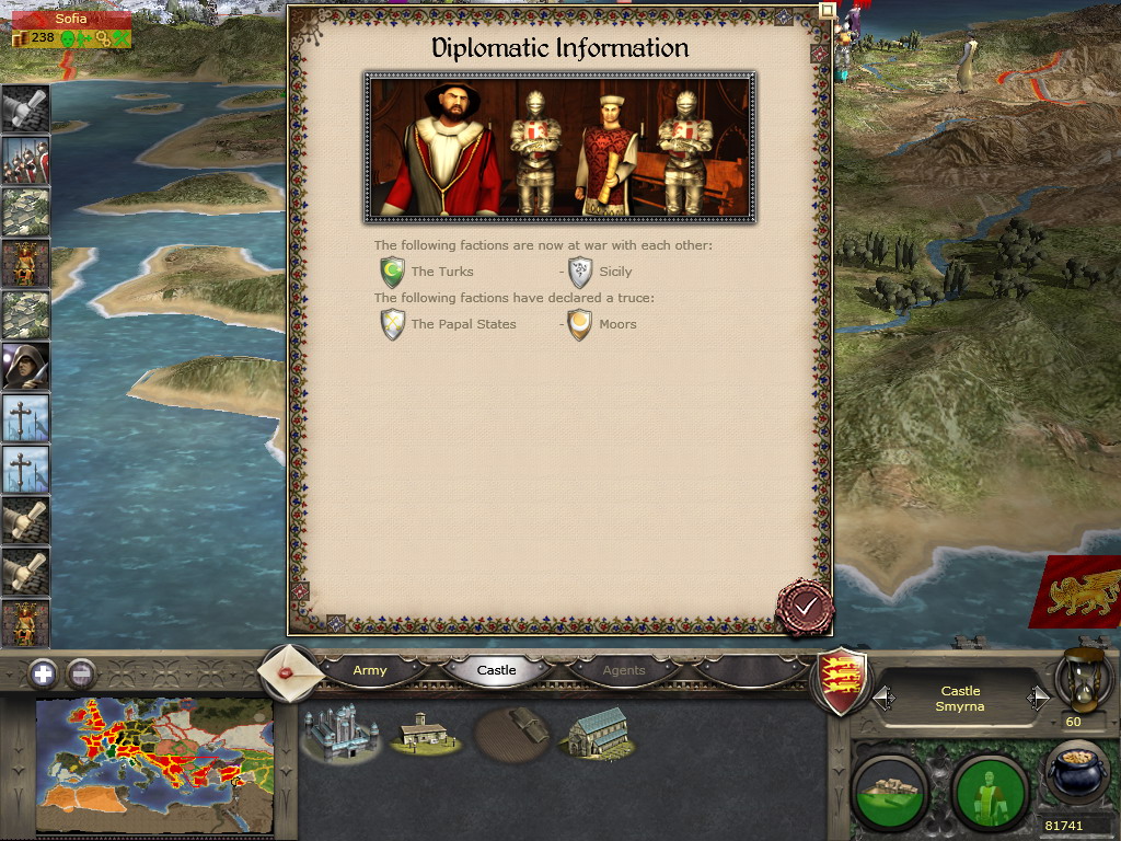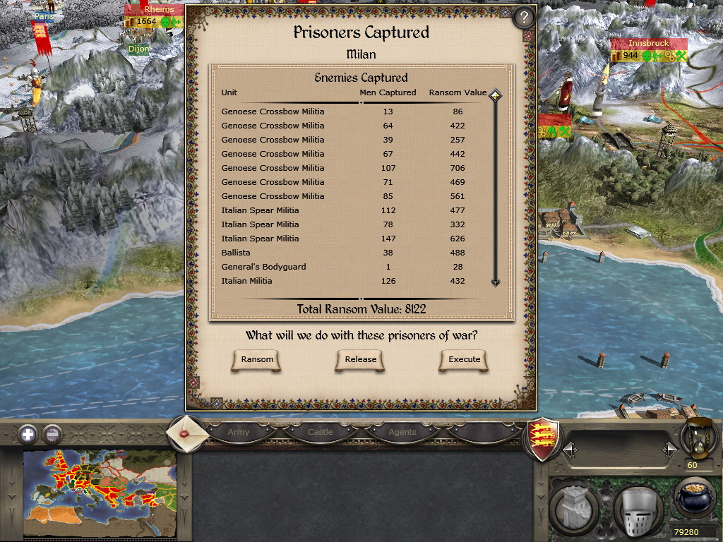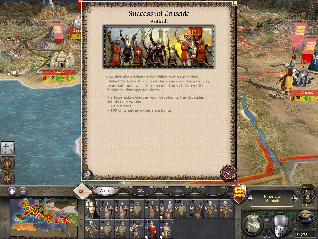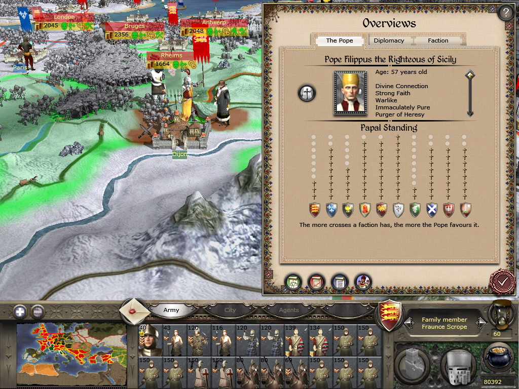 至于兵嘛,这种烂兵是不可能练成精兵的。初期手头十分拮据,而那种身无片甲的教徒一队有150人,却廉价到征募只需35块,穷的时候我不得不选这类士兵作战……