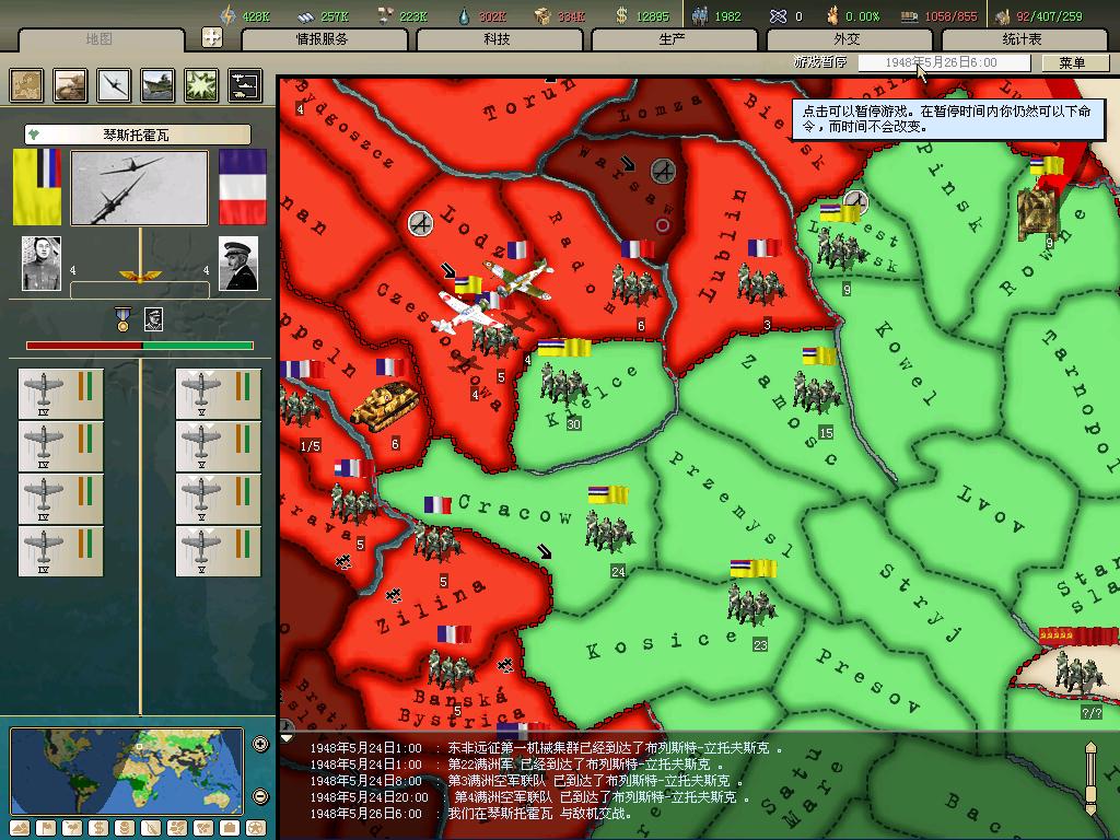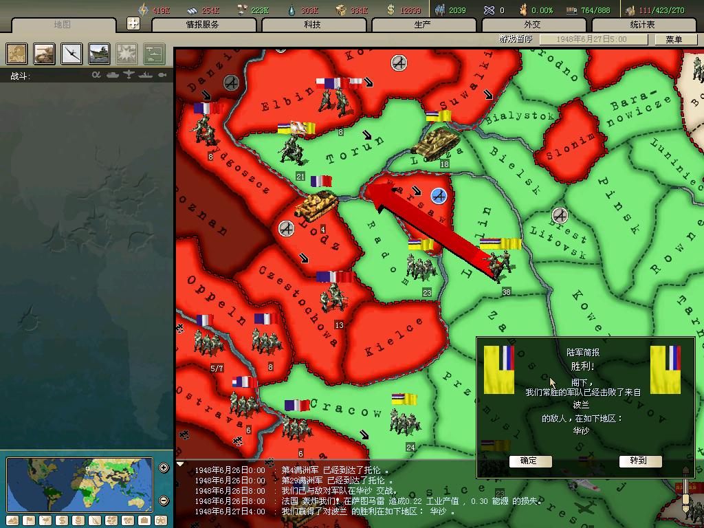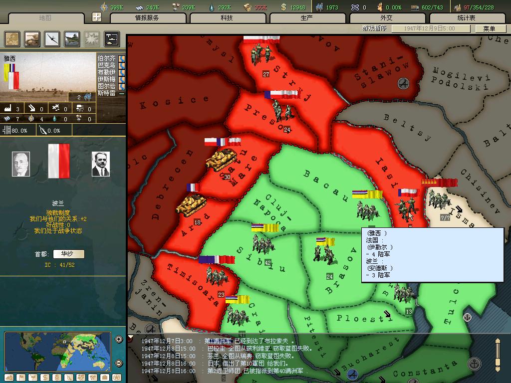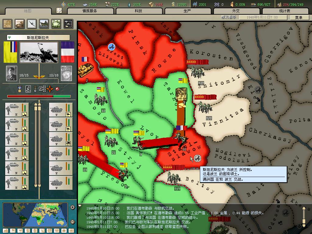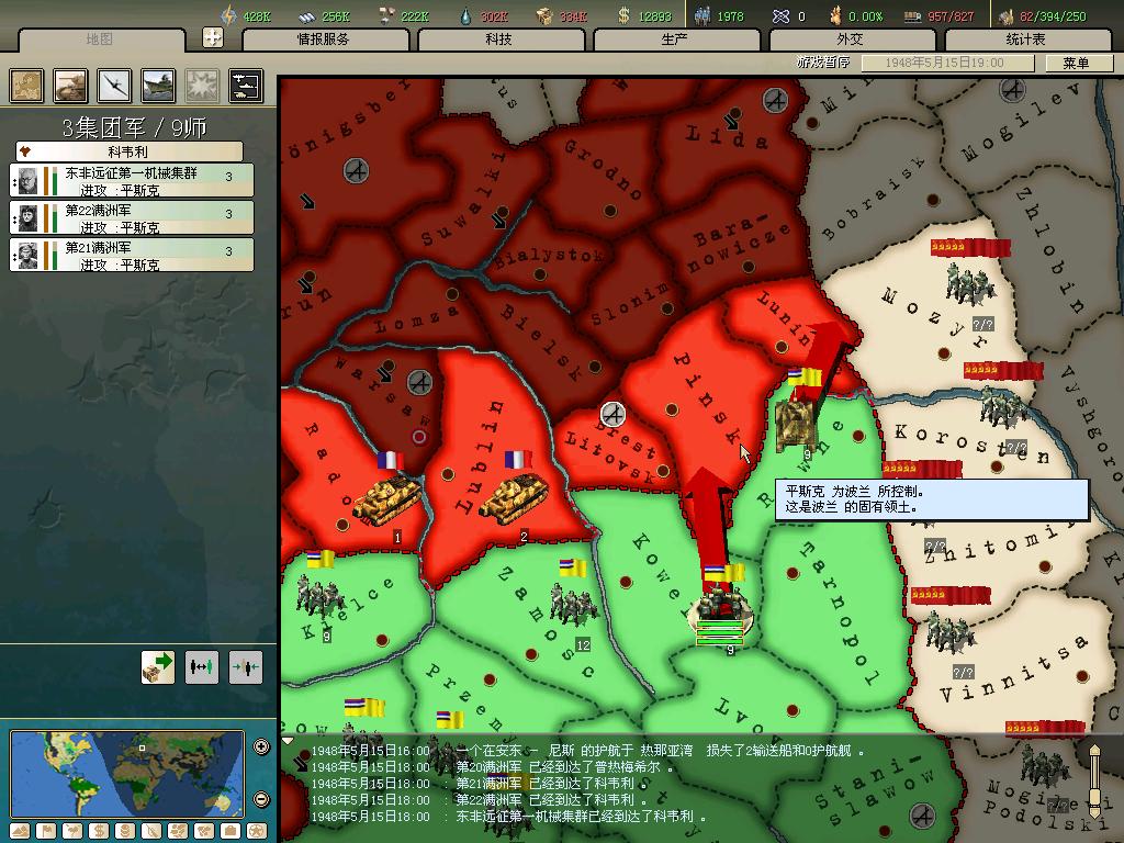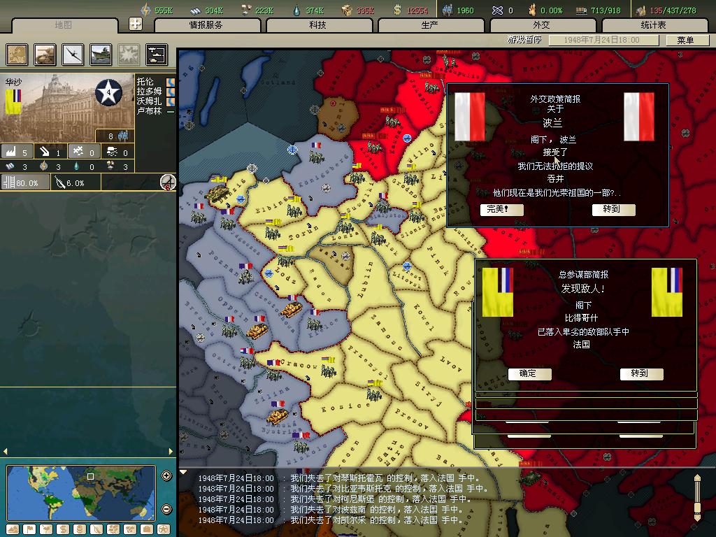 标题: DA1.3原版36满州国娱乐战报, 已更新至:1948年夏季 中日满轴心对抗英法美同盟 欧洲反攻势如破竹 攻陷华沙 吞并波兰!