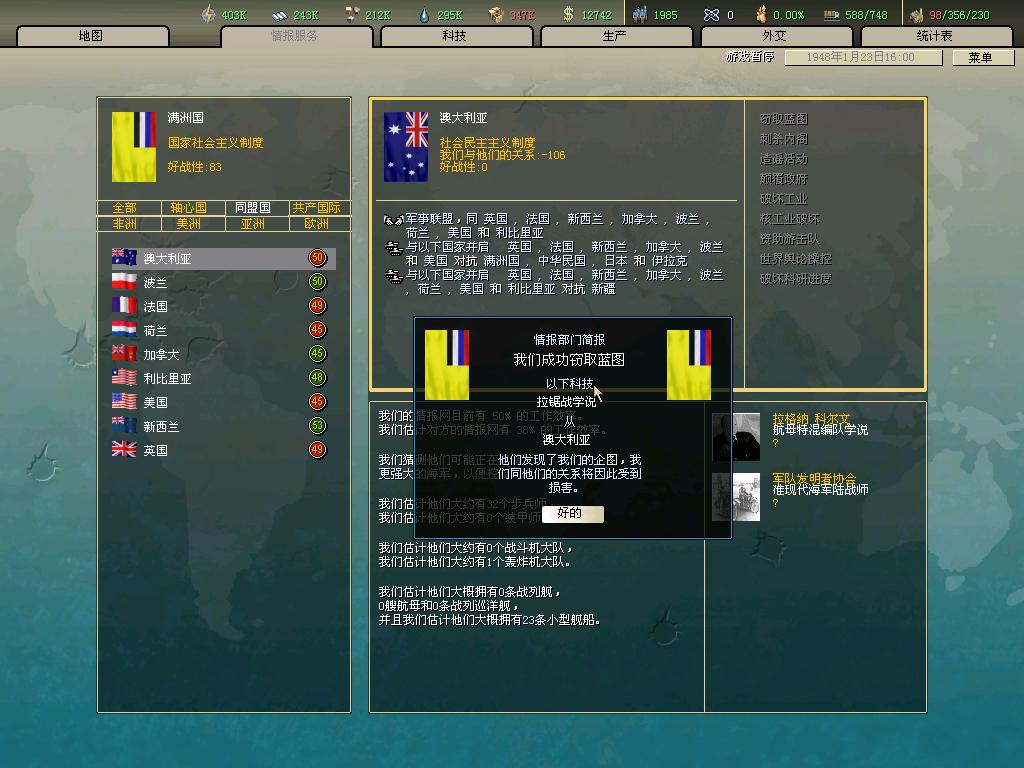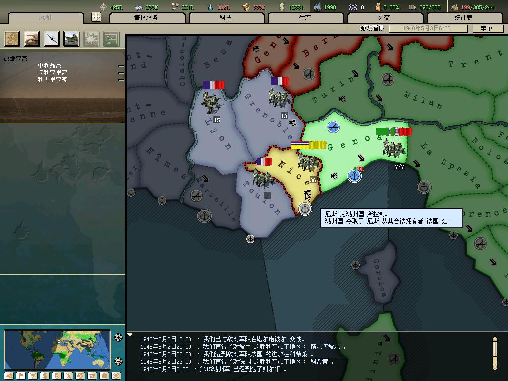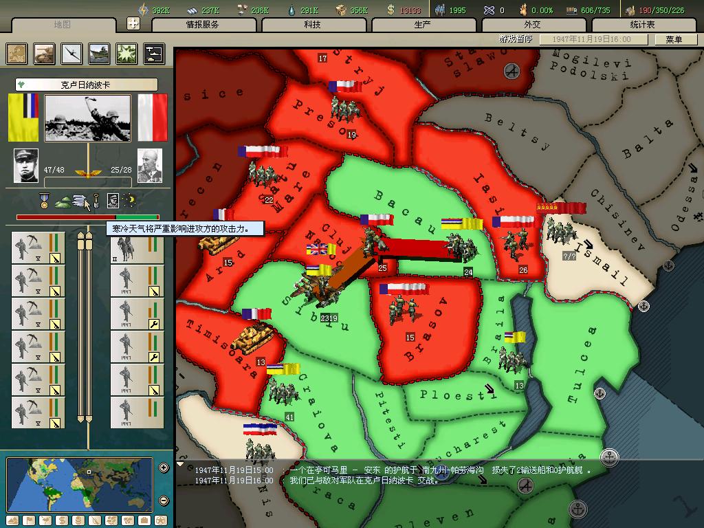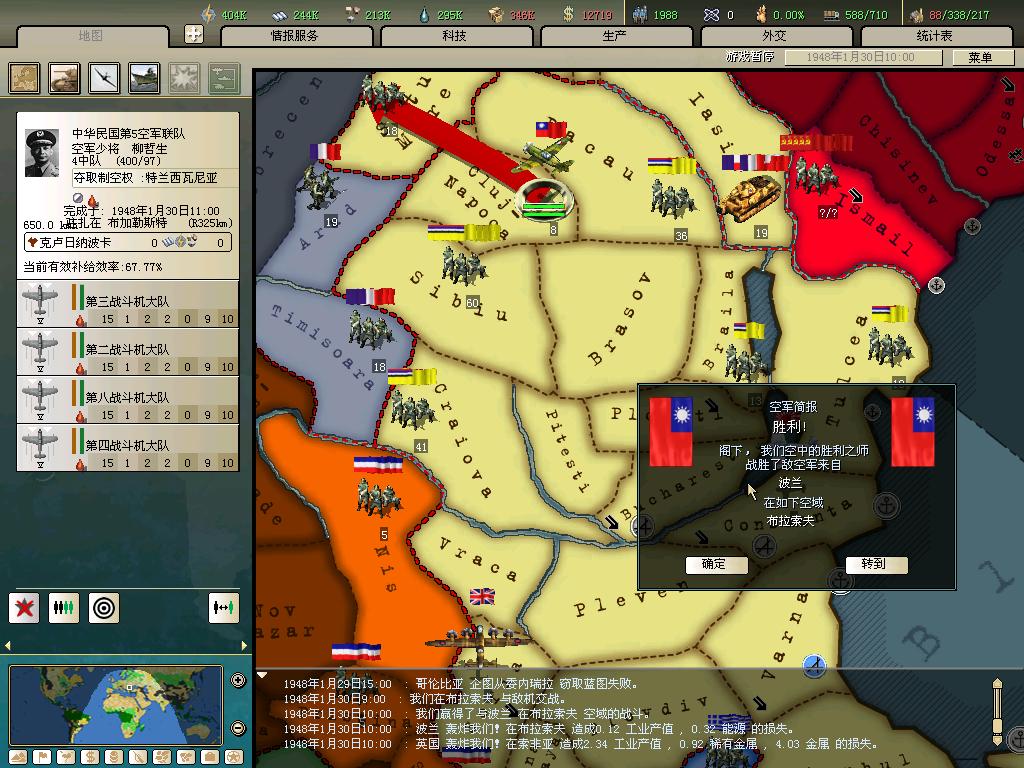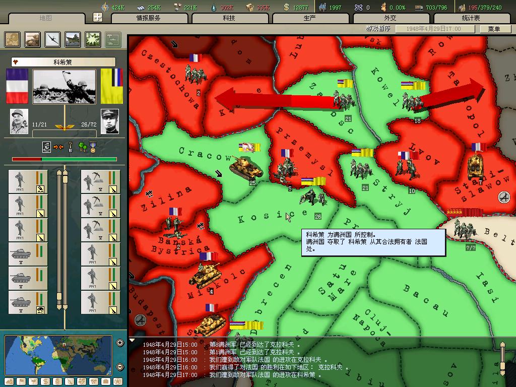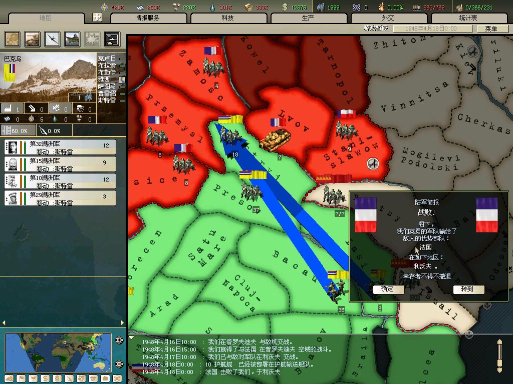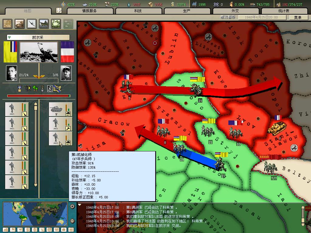 标题: DA1.3原版36满州国娱乐战报, 已更新至:1948年夏季 中日满轴心对抗英法美同盟 欧洲反攻势如破竹 攻陷华沙 吞并波兰!