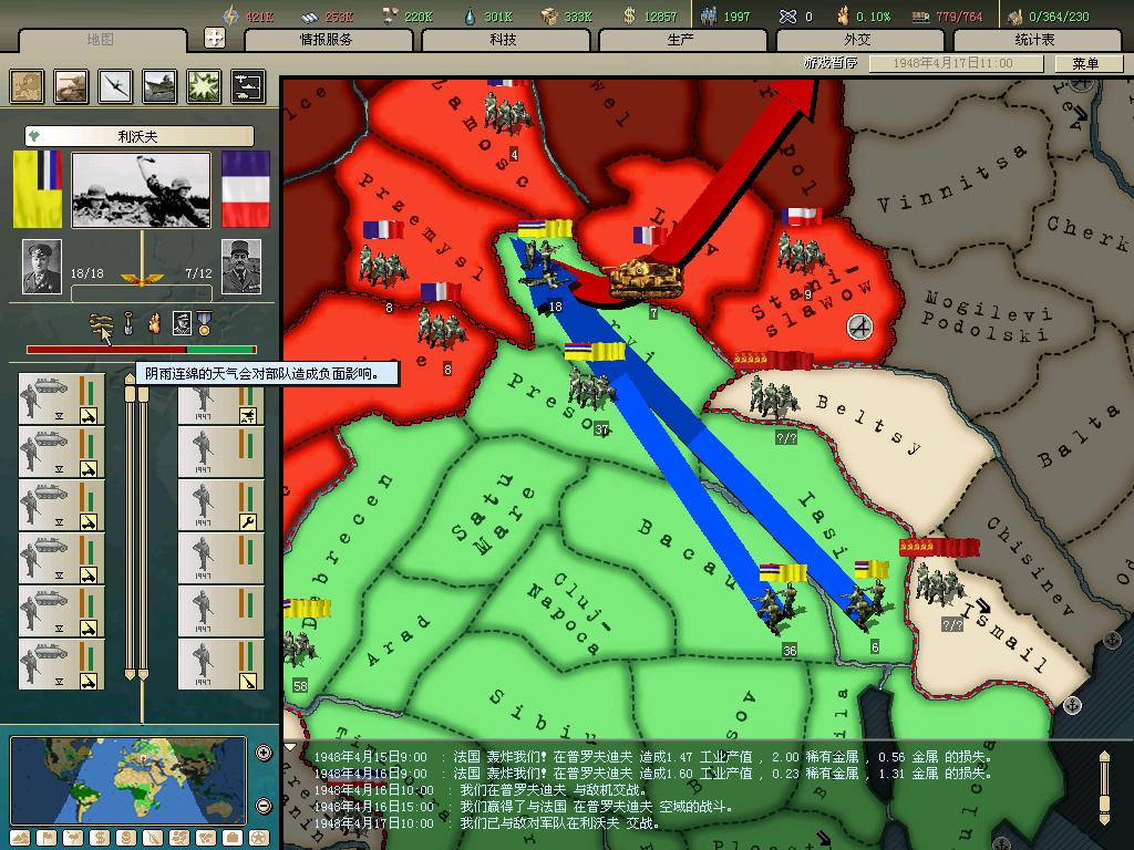 西非的天气很好,但东欧的封冻地形已经不适合进攻了,波法联军防线日益薄弱,不得不来回调动重新部署。