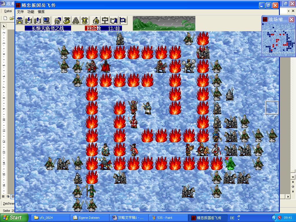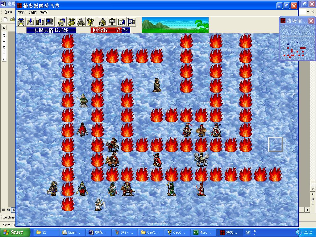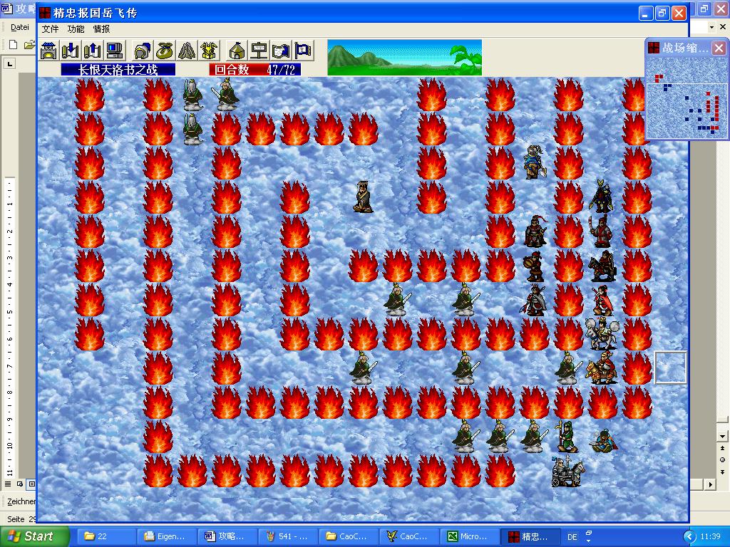 第三阶段总结:这一阶段是最后一关真正难点的开始,火焰的保护之下,我军的生存其实根本不成问题,只需派加了防的武将在前面顶住就可以了。这阶段的难点是进攻,但在普通装备下,各种特殊的攻击效果消失,进攻也变成艰难起来,只有慢慢磨了。如果将敌军引到火焰保护之外,可以增加一些攻击点,但我军的防御也会变难。