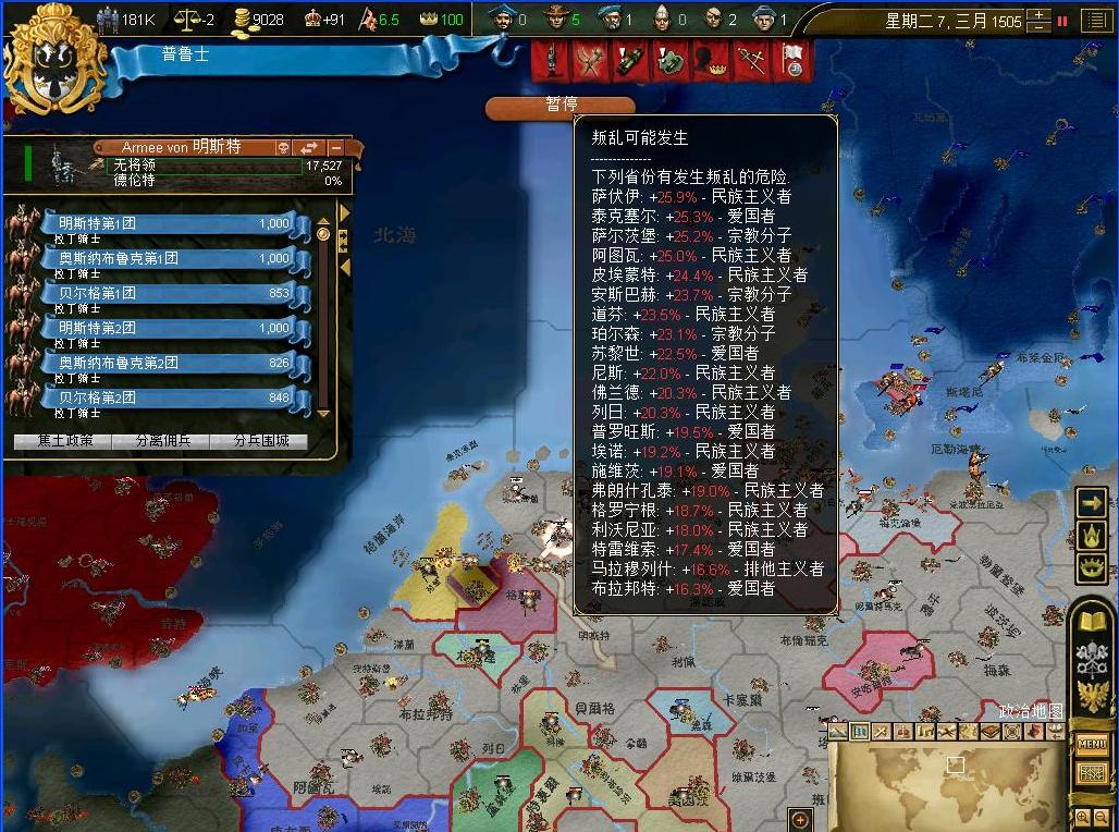 这段事件一直忙碌平叛.........到底是啥情况啊?就因为帝国现在稳定时-2?不看不知道,一看吓一跳...这次改革的代价真是....恐怖啊....几乎所有的省份反叛率都在15%以上....