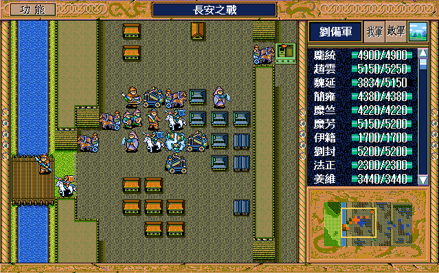 我 藩宫进村庄攻击骑兵9,马谡左激励、庞统右看护吴兰,吴兰上援助藩宫,刘备右上援助、刘封上二右三援助刘封,糜竺右下激励沙摩可,沙摩可左攻击骑兵4,王平左下援助陈式,陈式右五休息,刘辟左三、马良开始右上援助刘辟,黄权右激励糜芳,张飞上援助黄权;