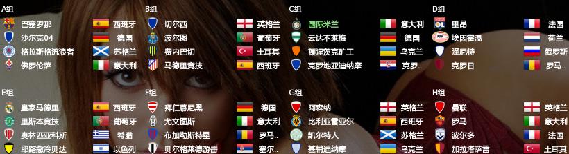 第一年的冠军杯抽签基本没有什么死亡之组,强弱实力分明