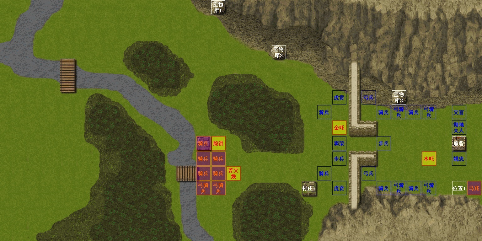 第3回合:金吒占住宝物库2并用“金箍”定一个敌军(最好是在关口的位置,以便挡住关内的敌军),木吒靠近宝物库3并给自己补满血。殷洪回归姜文焕,SL姜文焕出双击或暴击,尽量多杀敌。