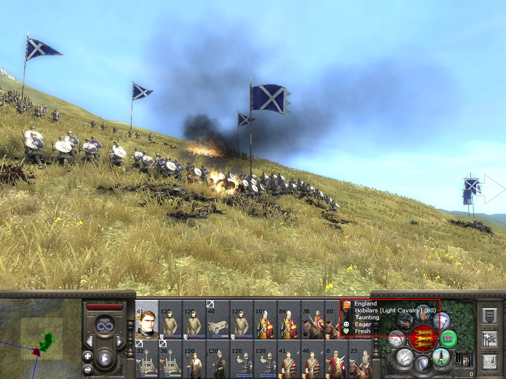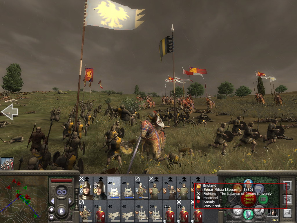 故意派出小股骑士明目张胆地“迂回”到敌阵后,教皇家的将军就领着卫队来“解除威胁”啦。结果就是以多打少,死在我骑士手中……