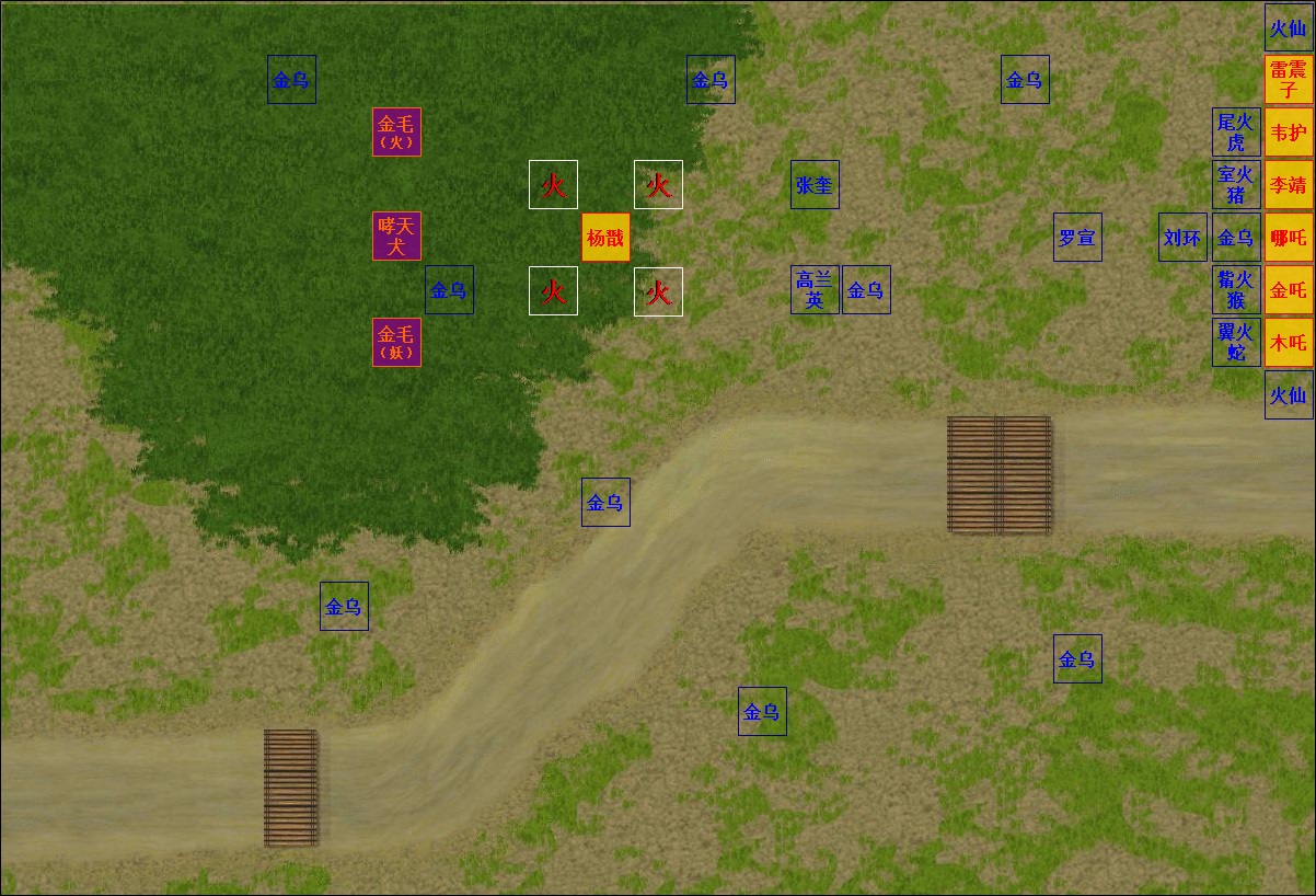 金乌很厉害,李靖被攻击一次就会死,注意卡位保护。灭金乌之前利用好韦护的降魔杵和哮天犬的“吼叫”降防是关键。木吒是打金乌的主力,加攻后在背后可以秒杀900多hp的罗宣(要借助个人本领:青萍剑),换到淡黄袍后更是厉害,残血的木吒(可利用金乌的穿透攻击或韦护撞心弄残血)在背后拉围攻可直接击退一只未降防的金乌。哪吒也并非一无是处,哮天犬“吼叫”,妖精金毛再换下血,SL哪吒一个暴击或双击也能击退一只金乌。最终小九第9回合触发金木合技过关。