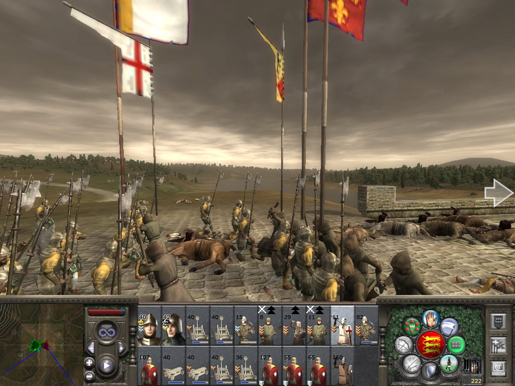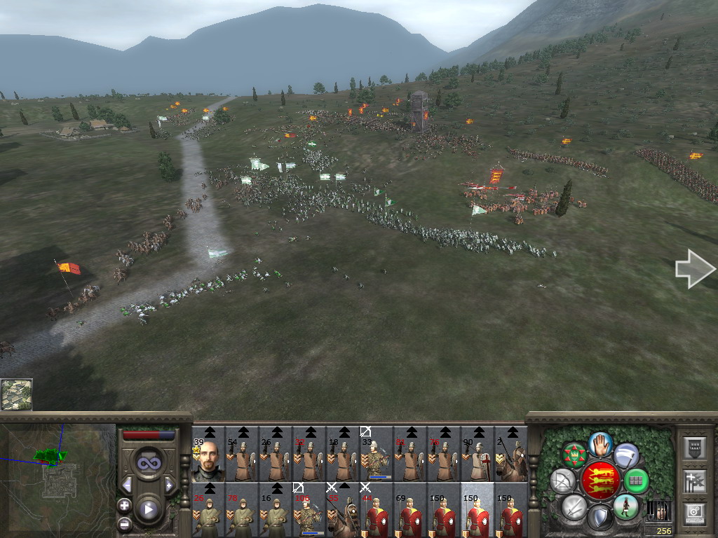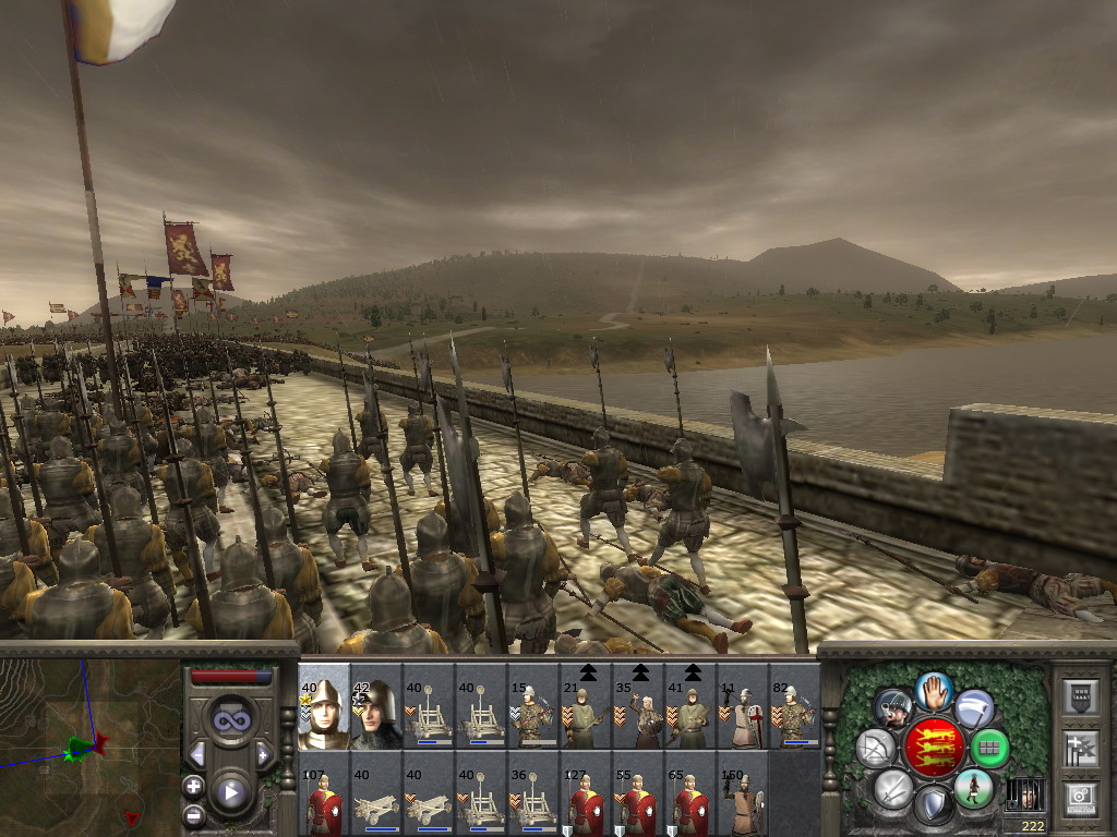 由于双方已经在混战,米兰弩手无法平行射击,只能向天放箭,希望能有几箭对我军造成杀伤……