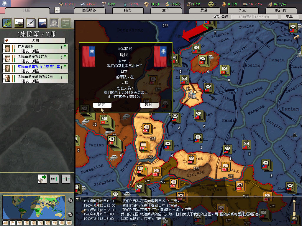 偶是在刚刚调整完所有部队将领和部队走向后去执行这个修改后的事件,结果忘记存档了,出来一个香港回来,澳门还被英夷占领的结果,懒得读档再整一次部队,所以只好acceptall先和葡萄牙和谈把澳门割给英夷,然后再找英夷索回澳门。。。。