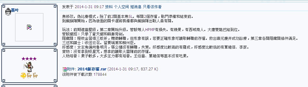 » 2014版《瓦岗山异闻录》补丁发布及BUG汇报帖