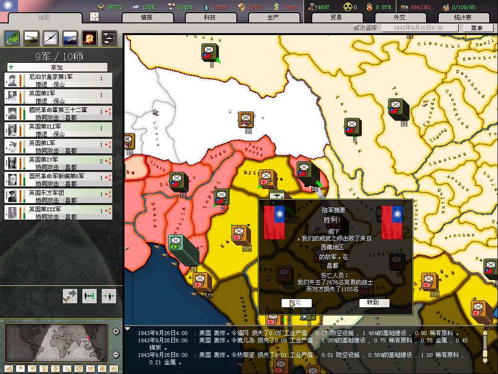 守备密支那失利,至于统一进度,诸位看官请看图,偶就不介绍了。。。