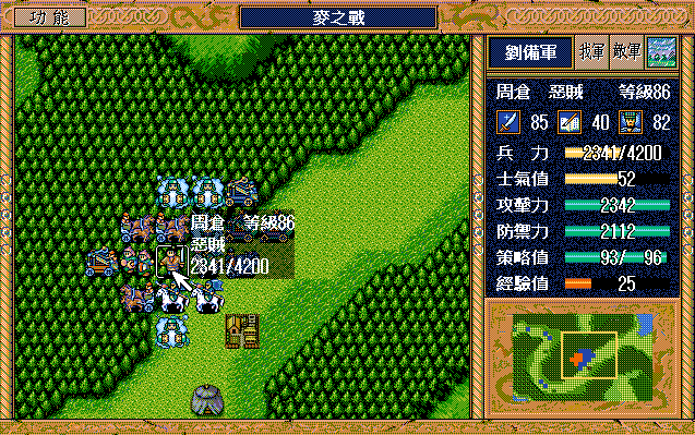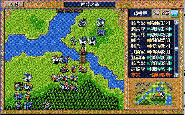 第24回合后:孙桓援助的差不多了刘备把骑兵混乱,放孙桓下来攻击马良,刘备绕过去准备卡位,沙摩柯在合适的时候灭掉上方步兵,让孙桓到这个位置,这样才能大策略吃主将。运输队醒来后大救济,然后到村庄左侧补给骑兵,糜芳混乱之,不能让他进村,否则后面没法利用村庄给骑兵补血了。魏延左侧骑兵血量不足时进村挑拨糜芳,左下骑兵醒来上移攻击魏延,运输队左下攻击魏延重新成阵,然后糜芳混乱村中骑兵,刘备攻击严畯并卡位,严畯醒来开始援助魏延下方骑兵。后面主要就是sl敌军的援助对象,敌军两个贼兵的策略真讨厌,中间用过若干次策略,否则还能多反击几下,体力是足够的,最后只能反击死猛兽和武术家,两个贼兵体力基本满的。