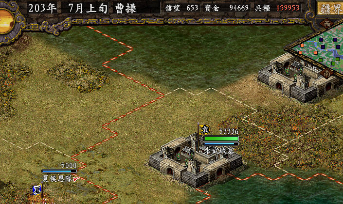 发现用了优化伴侣之后,要攻克一个据点变得困难多了。连一个19000多兵的港口都不容易打了。按照以前的规矩,电脑少于2万兵是不会出击的,可是现在派攻城阵型出去,电脑派出一队9000多兵的来迎击。改派单兵出去引诱,电脑不出来。改派两队野战阵型,电脑还是不出来。只有派一队攻城阵型加一队野战阵型,电脑才会迎击。这还只是一个小小的港口呢,如果以一个城去进攻有多个城的电脑,电脑多城源源不断地来援兵,怎么能打得下来?