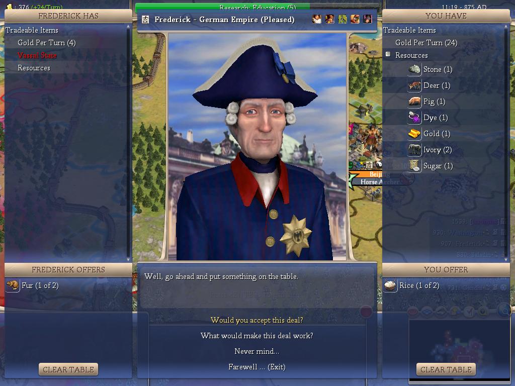 有个frindly的盟友就是好,研究出新科技第一时间跑来交易,省自己不少力啊