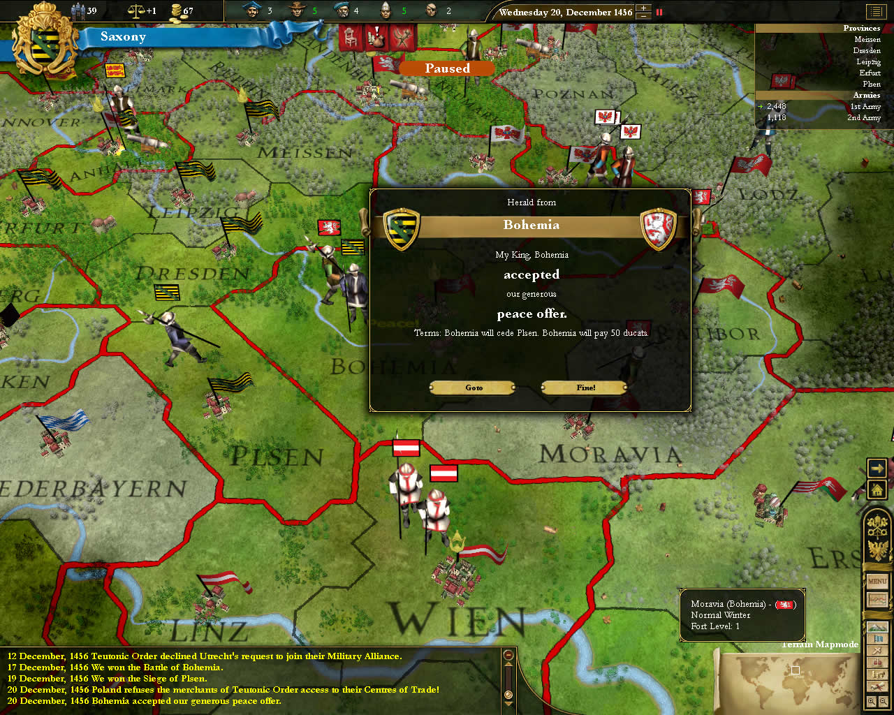 标题: EU3内测战报:萨克森之腓特烈的雄心, 参加内测的MrT在官网发布的演示战报译文