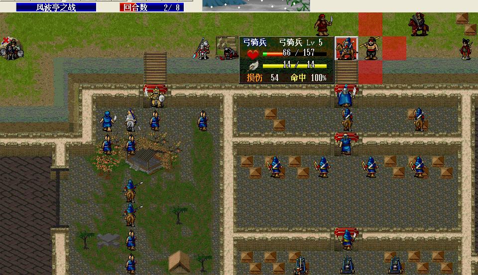 同时,高宠出现,可以让何元庆和诸葛英分别站在左下和右下以吸引两个弓兵的攻击,否则弓兵攻击高宠,反击涨经验;