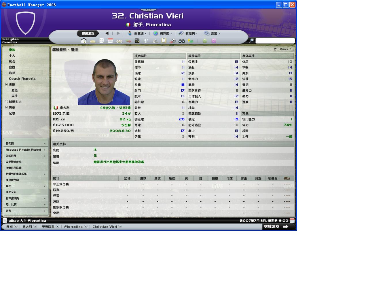 还有一个,Cacia,即将在1月份加盟的前锋,顺带也提一下。与Mutu相比能力和潜力都差了一点,只能打打替补了。