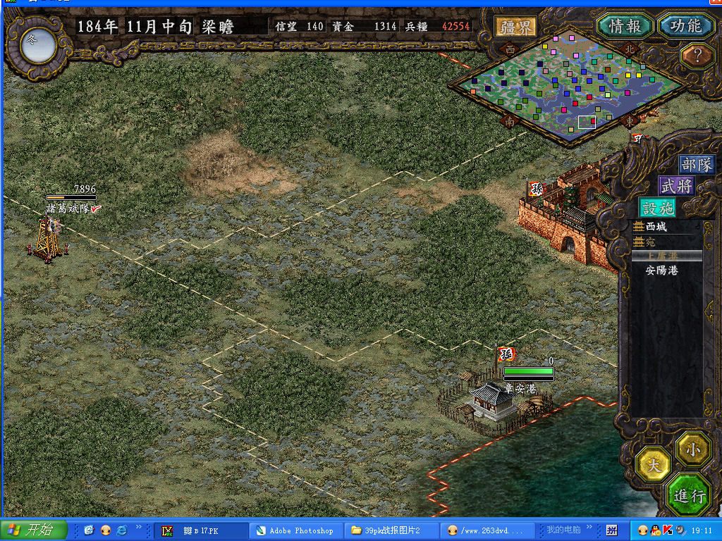 得了汝南之后很高兴,觉得换季之后就钱粮无忧了,于是读档把攻长安的部队撤回西城防守.原因是觉得本帖的标题是<挣扎在西城>,所以为了扣题还是尽量不想放弃老家,而长安虽然战略意义更重要,但以我的兵力打下来也得花2-3旬,而打下之后又得面对董卓军的胡遵队,队中先锋吕布,军师杨残废....