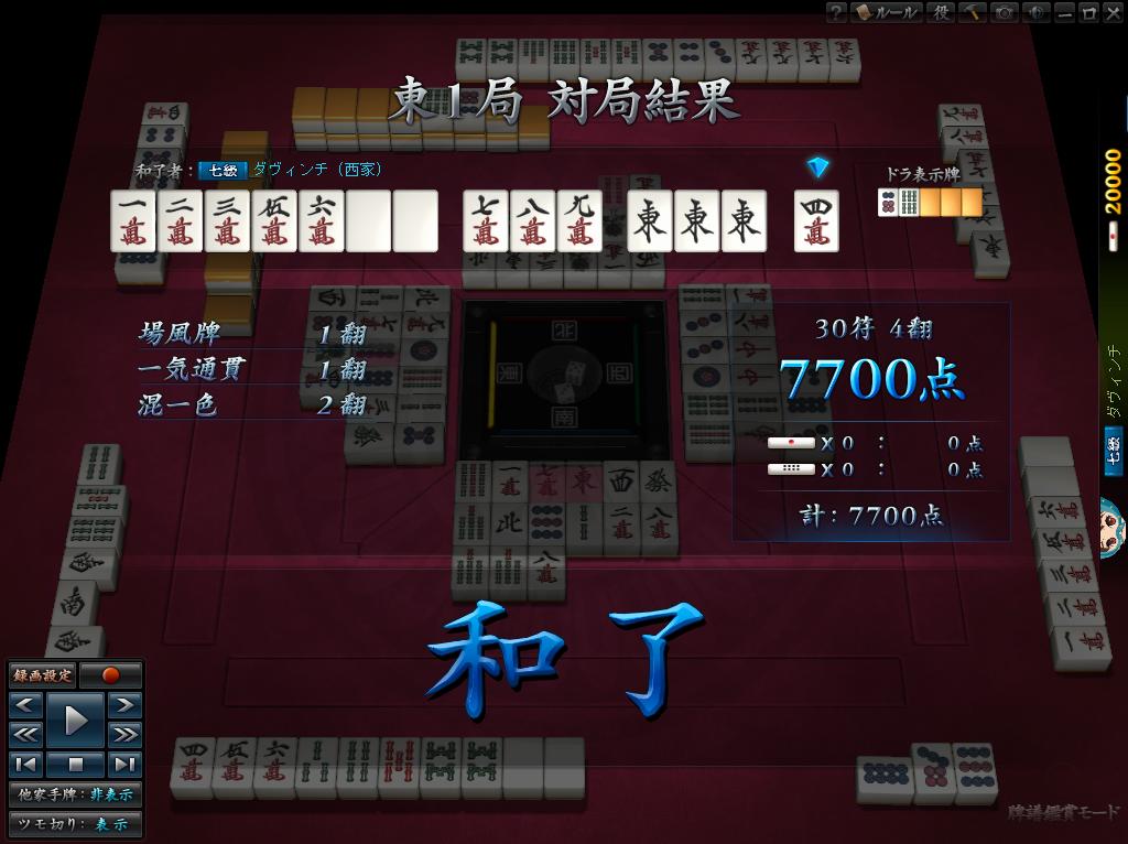 东1局,下家立直后放铳给对家(庄家)跳満18000,剩1000。