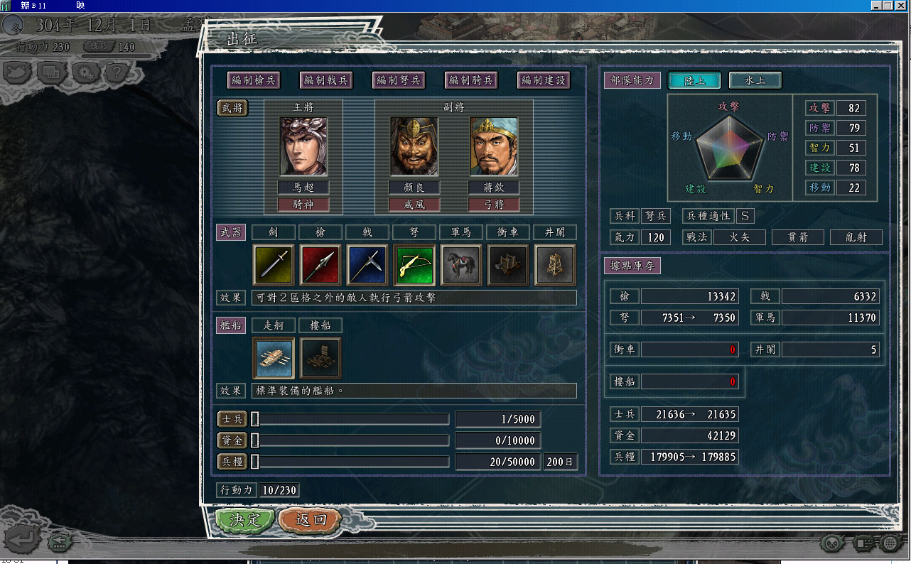 经过耐心的等待,终于登庸了第一个弩兵S的武将