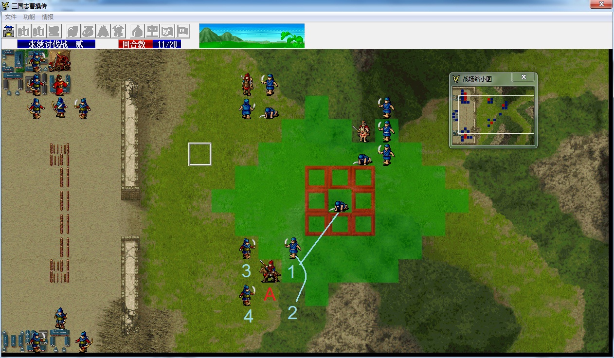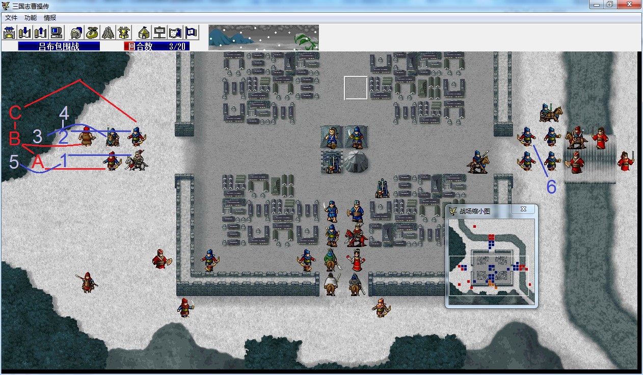 我在原来的攻略中增加了几幅图和更详细的说明,你可以看一下。同时我把每一步的存档都放上来。附件有两个部分,part1是战前准备,第1回合,以及6回合到12回合的存档,part2是15回合到20回合的存档,你可以看看。