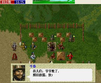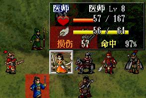 下回合:如果RP好的话,梁红玉物理全档,王横中毒扣血,物理全档,吉汤前进后,诸葛牛鼻子给三人褔星,牛走到桥头,王佐降折彦质上面骑兵的防,由折暴击击退.岳飞给折部褔星,施全给我军四人褔星.友军回合王横双击骑兵,会由侍女击退,由于王横会走出道士放毒范围,侍女顶上,所以道士会向侍女万蛊缠身,而造成侍女的低血.注意不要拿药,要让低血岳帅去吸引敌人(不用管YYP的打法真爽!). (7)