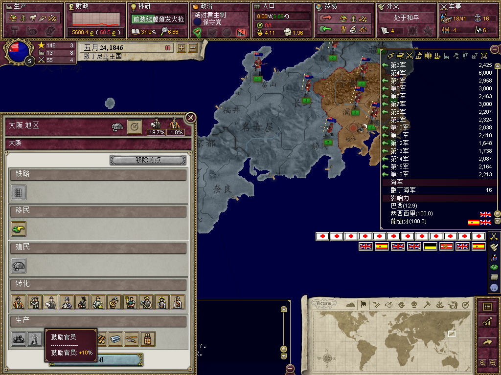 最完美的人力生产地就是11区了,人力多,识字率都在40%以上,国家未开化,打起来也不是很困难