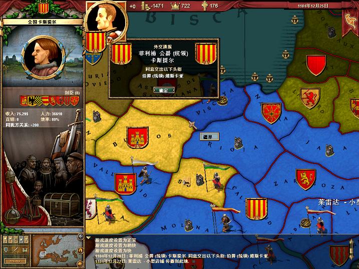 摩利那和卡斯提隆的丢失导致托雷多北方再无藩篱,直接面对纳瓦拉公国的兵锋。因此托雷多大酋长调集重兵沿海岸北上试图重新夺回卡斯提隆,然后从侧翼扫荡在摩利那的纳瓦拉主力。阿尔瓦罗公爵一眼看穿了敌军的意图后,以堂弟军务大臣法德里克为先锋向卡斯提隆进军,双方在卡斯提隆爆发大战,最终以纳瓦拉公国挫败了托雷多军的计划告终,当然付出的代价也相当惨重,甚至法德里克也亲临火线而付伤。北线战事的胶着显然对托雷多更为不利,在意识到其中的厉害关系后,托雷多大酋长以放弃摩利那和卡斯提隆的代价接受了阿尔瓦罗公爵的停战协议