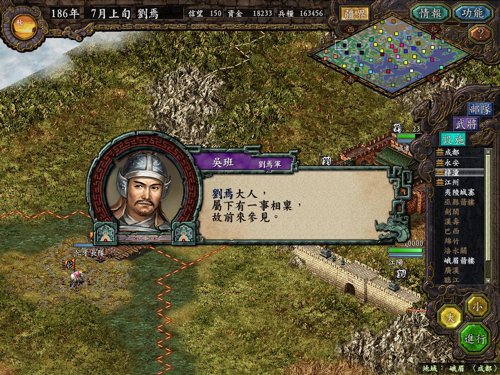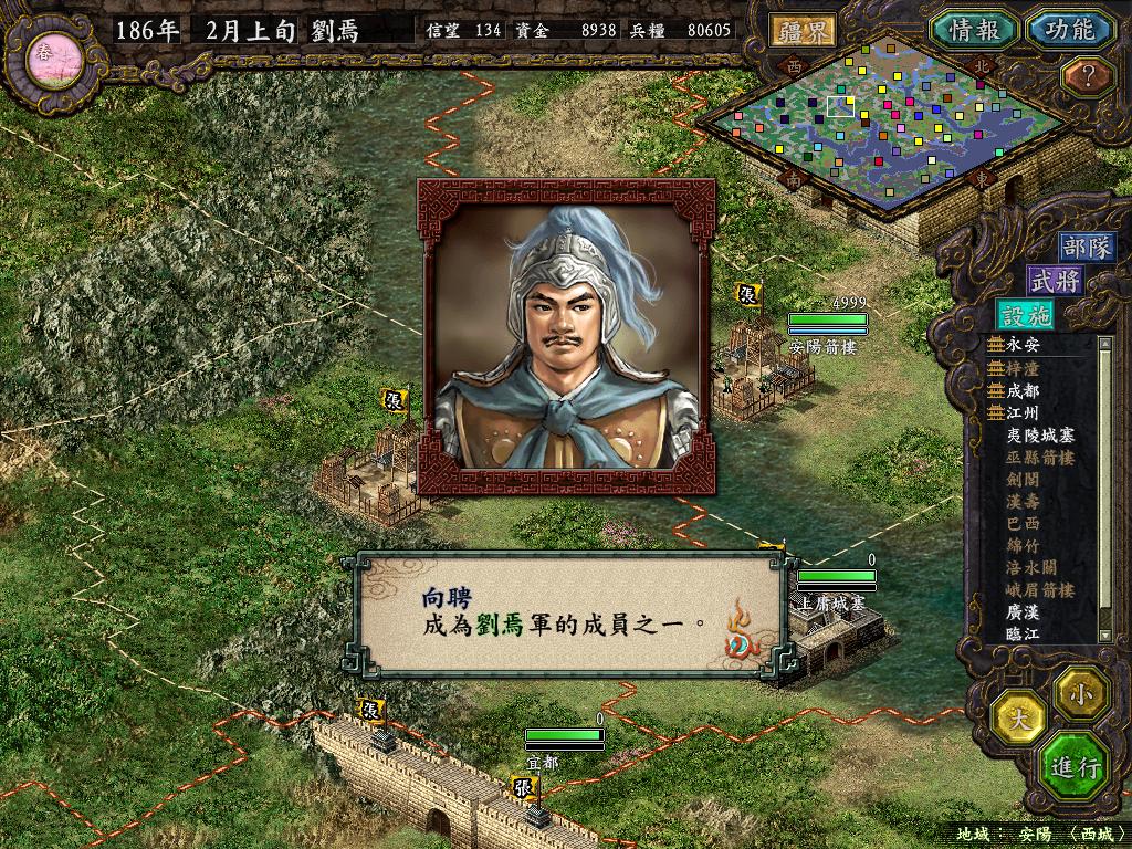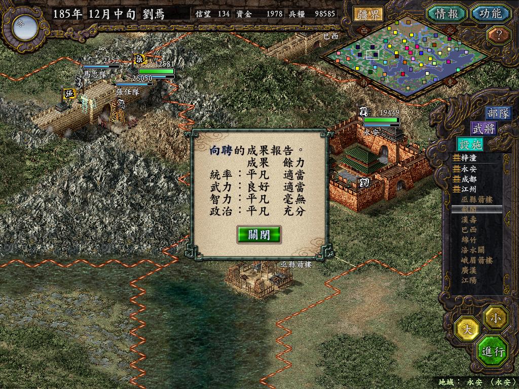 一番苦战之后,张任部只剩余6千余人,但永安也只有了1万6千多人,另一边法正部估计难逃被歼灭的下场(没有一个地方可以救援成功他们,郁闷),不管他,准备让黄权带兵1万7千人,从水路进攻巫县!