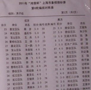 标题: 2011年“鸿儒杯”上海市象棋锦标赛参赛流水帐